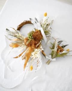 結婚式や前撮りに!ホワイト×ブラウンのアンティーク風リースブーケ&ブートニア♡