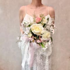 【ブートニア無料】薔薇 ウェディングブーケ ピンクブーケ ホワイト 韓国 造花