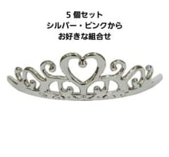 ミニクラウンオブジェ シルバー ピンク ティアラ 五個セット ケーキ