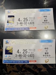 【即日発送】4月25日 中日vsヤクルト チケット 2枚