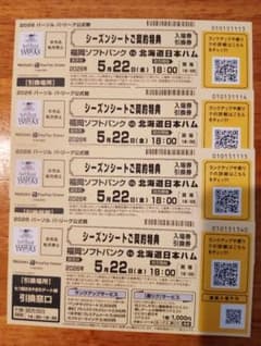2026年5月22日(金)ソフトバンクホークスVS日本ハム 入場券引換券 4枚