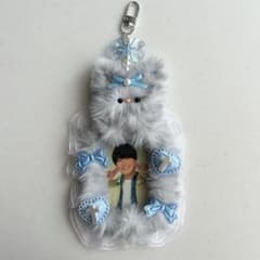 トレカケース モールドール キーホルダー ねこ ブルー 推し活 ふわふわ