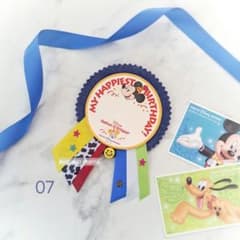 07》ディズニー誕生日に!バースデーシール用バッジ 濃青6本リボン ロゼット