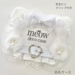 【猫耳❤︎デコ名札ケース】ネームプレート名札入れリボンデコ白ねこみみ2020