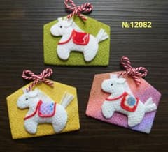 ちりめん細工 わた入絵馬型 金彩5枚組