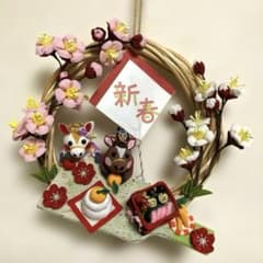京都製【和風小物】ちりめん生地 インテリア お正月 迎春 2点セット