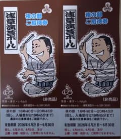 残り1セットです。送込 浅草演芸ホール夜の部のご招待券2枚ペアセット。