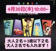 4月30日10時~ピクサー展大人2名+3歳以下(2名含)