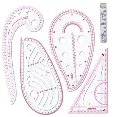 【在庫処分】曲線ルーラー プラスチック 4枚セット カーブルーラー 雲形定規 三角定規 カーブ定規 カーブ定規 裁縫用 定規 ルーラー 縫製定規 フレンチカーブ 服装ルーラーツール メジャーテープ付き YFFSFDC DIYソーイング用品 洋裁や衣装デザイン