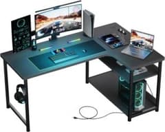 ゲーミングデスク L字 コンセント付き led ラック付き