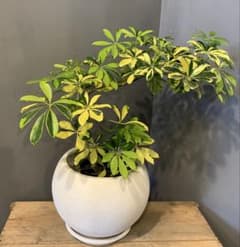シェフレラ ハッピーイエロー 2 ファイバー鉢 お皿付き