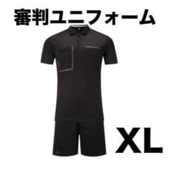 サッカー レフェリー 審判服 レフリー ウェア 上下 セット 黒 ブラック L