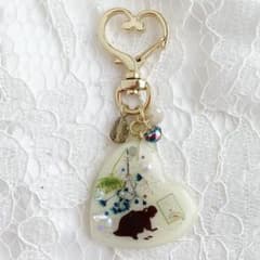 【3784】百人一首 競技かるた ペールイエローのハート型 かすみ草入りチャーム