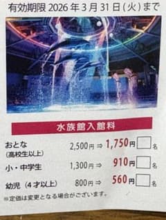 名古屋港水族館 特別優待割引券