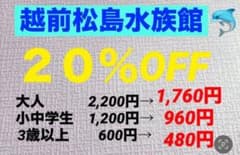 即日発送《越前松島水族館》超お得20%OFF割引券☆
