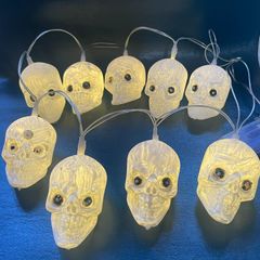 電照髑髏 どくろライト 9連 クリスマス LEDイルミネーションライト 電池式 リ ガーデンライト パーティ用品