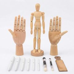 木製デッサン人形+ハンドモデル 2点セット 約20cm 可動式 美術デッサン用