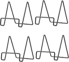 Alpha Depot イーゼル カードスタンド 写真立て 金属製 ディスプレイスタンド ポストカード 色紙 展示用 (ブラック x M 4個, 9 x 11.5 x 9.5cm)