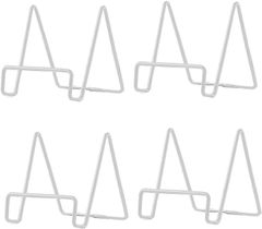 Alpha Depot イーゼル カードスタンド 写真立て 金属製 ディスプレイスタンド ポストカード 色紙 展示用 (ホワイト x M 4個, 9 x 11.5 x 9.5cm)