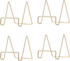 Alpha Depot イーゼル カードスタンド 写真立て 金属製 ディスプレイスタンド ポストカード 色紙 展示用 (ゴールド x M 4個, 9 x 11.5 x 9.5cm)