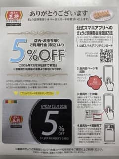 餃子の王将 ぎょうざ倶楽部会員カード
