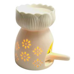 【即日発送】(Flower3) キャンドル式 正規品 (高さ10.5cm) 白 キャンドルホルダー付きセット アロマポット 陶器製 [Capitana]