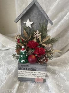 小屋型造花アレンジメントクリスマス(ハンドメイド)
