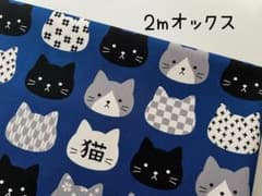2m ネコ 猫 大きめ フェイス 顔 和柄 オックス 生地 青 @32D