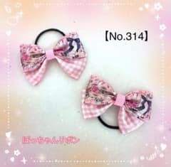 【ヘアゴム(ヘアリボン)】姫かわ×チェック柄(ピンク)2点セット