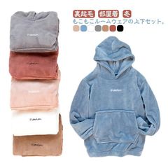 フード付き もこもこ レディース ロングパンツ 暖か 裏起毛 パジャマ かわいい パーカー あったか 2点 上下セット 部屋着 冬 パジャマ ふわふわ セットアップ 着る毛布 部屋着#yuzuc566054