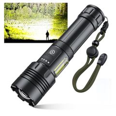 懐中電灯 軍用 最強【40000LM超高輝度・5000mAh電池】IPX6防水 防衝撃 Type-C充電 COB作業灯 7モード調光 ズーム式 防災 地震 避難対策 SOSライト 緊急用 フラッシュライト 国内発送