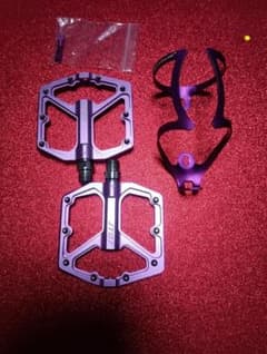 フラットペダルとバルブキャップとボトルケージの紫パーツセット