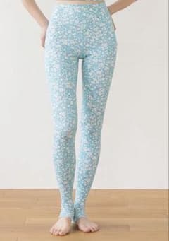【SUKALA】花柄ハイウエストヨガトレンカレギンス コバルトグリーン