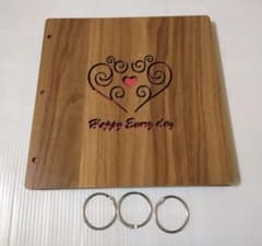 未使用品 木製アルバムカバー ハートデザイン 3リング