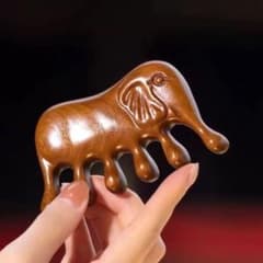 天然木 ゾウさん マッサージコーム 頭皮ケア 経絡 ツボ押し 彫刻 癒し 茶色