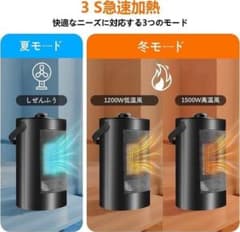 セラミックヒーター 小型 速暖 電気ファンヒーター 省エネ節電 3段階温度調節 大風量 操作簡単 ダイヤル式 転倒OFF 過熱保護 耐火素材 ミニ 暖房器具 電気ストーブ 静音 コンパクト 持ち運び 足元 窓下結露対策 寒さ対策 日本語取扱説明書 ブラック