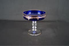 BOHEMIA ボヘミアガラス金彩コンポートチェコスロバキアコバルト 松坂屋購入