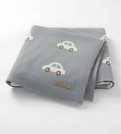 車柄 水色 ベビーブランケット ニットブランケット