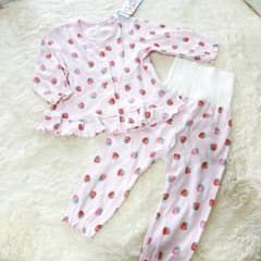 新品 いちご柄フリル付きベビーパジャマ 80cm ピンク 腹巻き付きパンツ