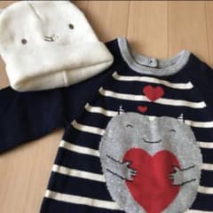 未使用GAP ベビー つなぎ ロンパース 80サイズ 帽子 ニット帽