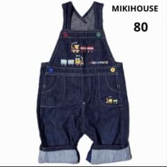 未使用✨️ミキハウス 80 デニムロンパース 電車 クマ プッチー 刺繍 調整可
