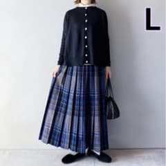 セットアップ ニットカーディガン プリーツスカート ロング ブルー きれいめ