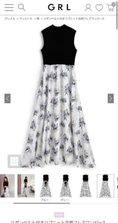 【新品未使用】GRL リボンベルト付きリブニット花柄フレアワンピース