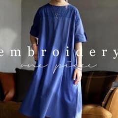 antiqcafeselect新品タグ付き エンブロイダリーワンピース ブルー