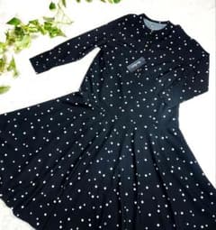 新品『INDIVI』(38)ドット柄フレアワンピース 5部袖 お洒落 日本製