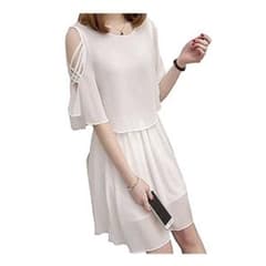 オープンショルダー 半袖 ワンピース 膝丈 無地 ドレス レディース 新品未使用