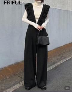 FRIFUL フリル付きブラックオーバーオール