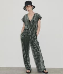 完売入手困難品ur'sリネンライクヘンリーネックオールインワン グリーンMサイズ