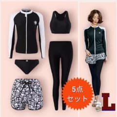 水着2点セット レディース 半袖 ラッシュガード パンツ 白黒 L