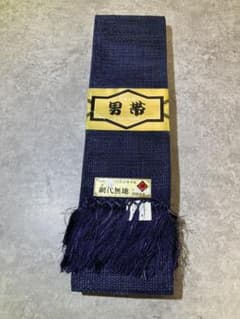 角帯 正絹 本場筑前博多織 村田全平 村田智恵 網代 濃紺 フリンジ 房